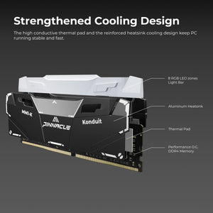 Designed and built to elevate your game, Pinnacle memory uses the best components and most thorough testing standards to ensure your system is always at peak performance. Equipped with XMP2.0 and RGB support, the Konduit is ready for seamless plug and play. Novice or pro.